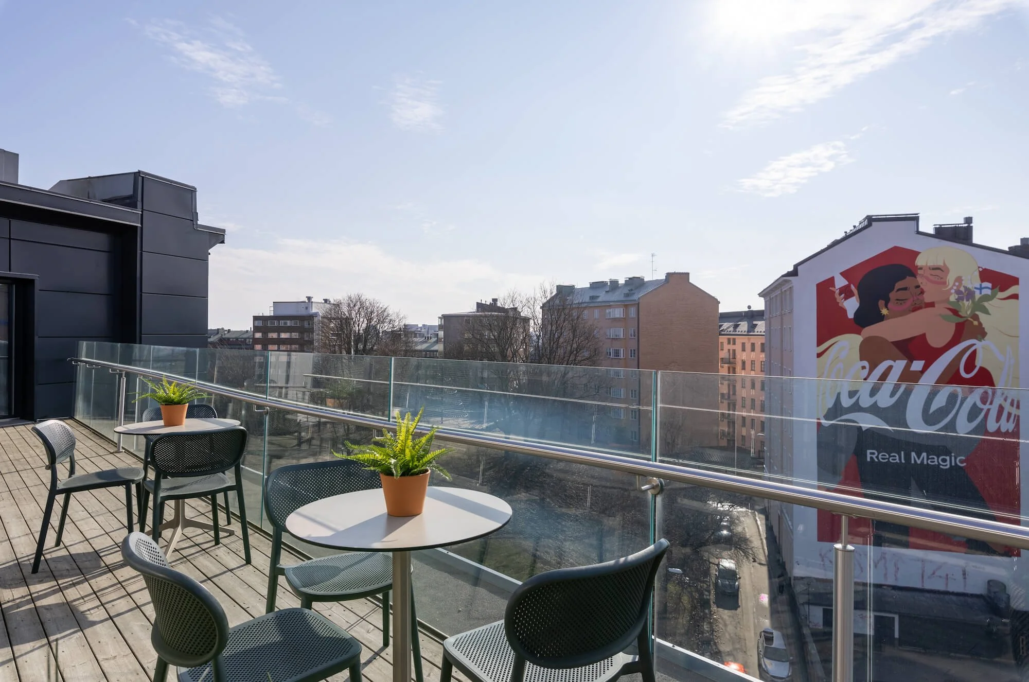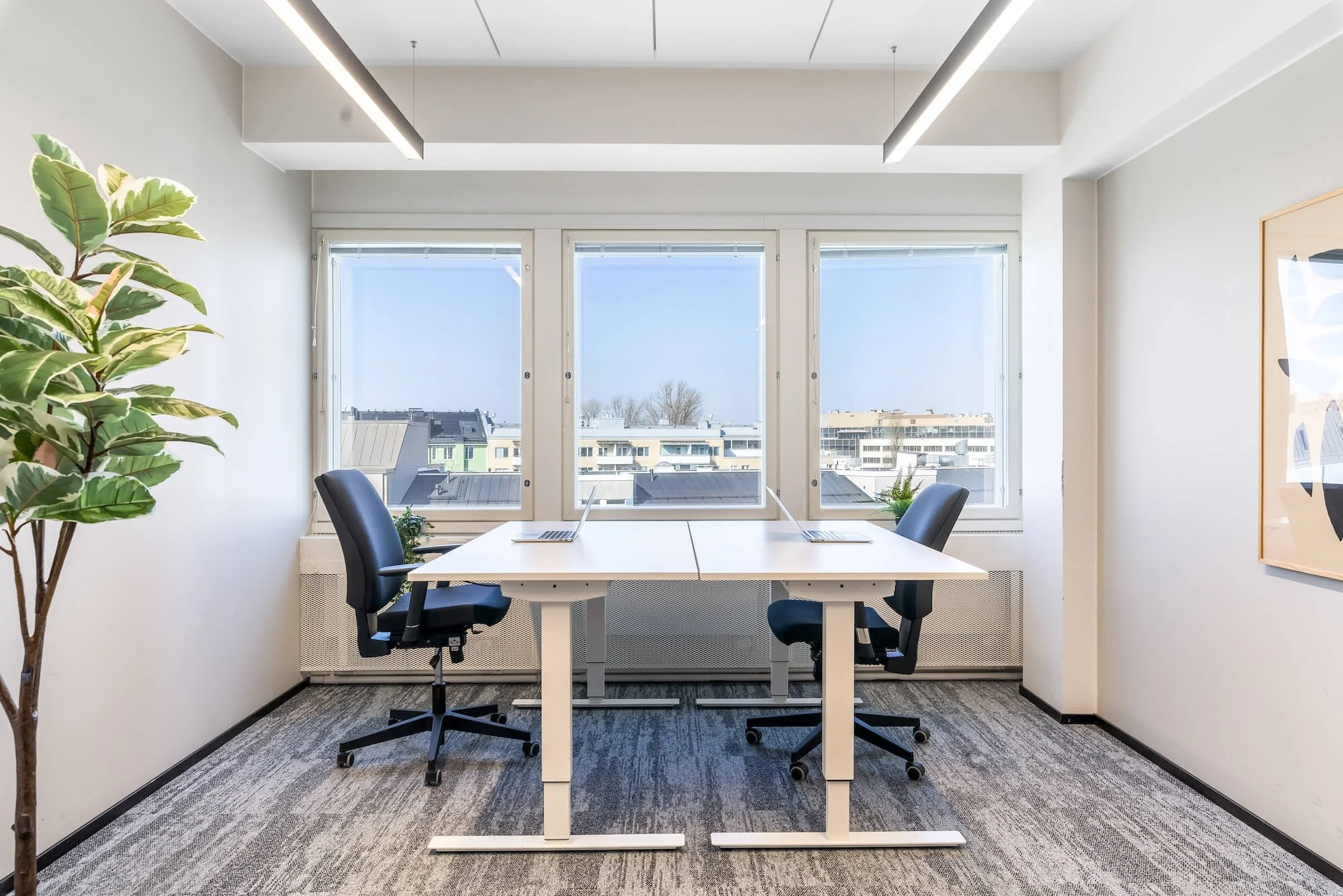Boffice Sörnäinen is located in the immediate vicinity of the metro station and offers bright small offices on the 8th and 9th floors with open views of Katri Vala Park and the city. Renovated in 2020, the property guarantees an energy-efficient working environment, and you have access to telephone and meeting rooms as well as a roof terrace. Local services, the property's own bicycle parking and shower facilities make everyday life smooth in this central location.