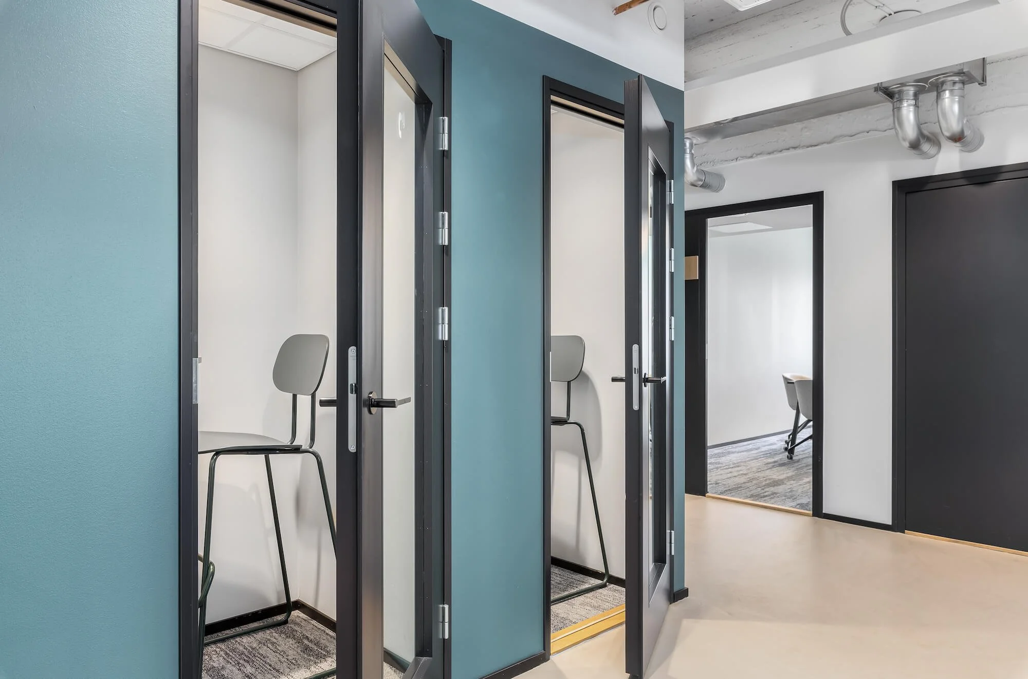 At Boffice in Sörnäinen, tenants have access to two 6-person meeting rooms, one 8-person meeting room, and one 10-person meeting room, as well as several phone booths.